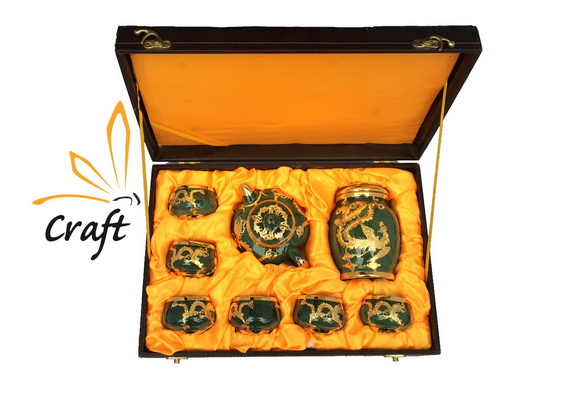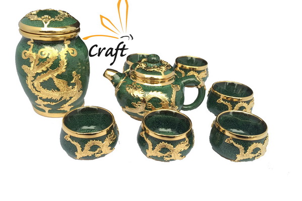 Bộ ấm ngọc xanh rồng bịt đồng